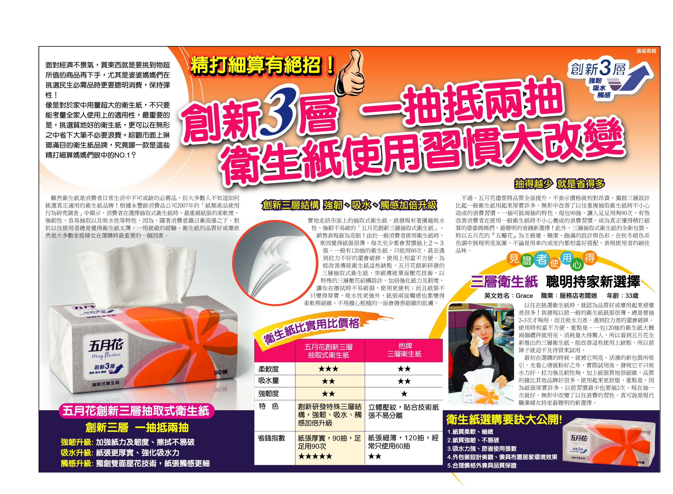 五月花創新三層抽取式衛生紙 「一抽底二抽」讓荷包真正省到錢 (時報週刊)